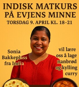 Sonia Bakkeplass vil lære oss å lage indisk mat: Nanbrød og kylling curry. Pris 100 kr. Påmelding.